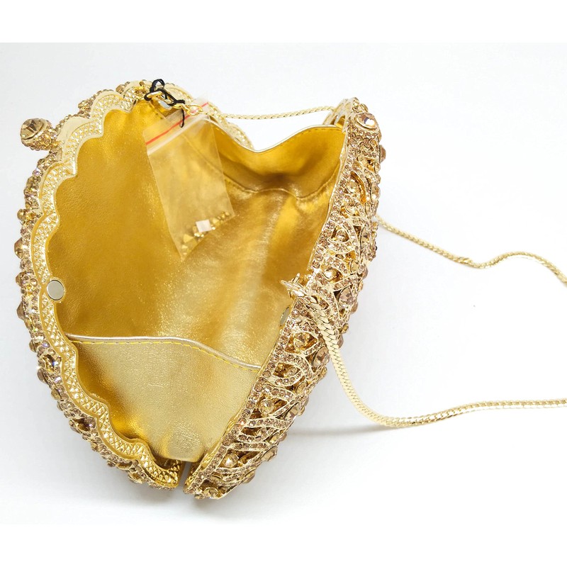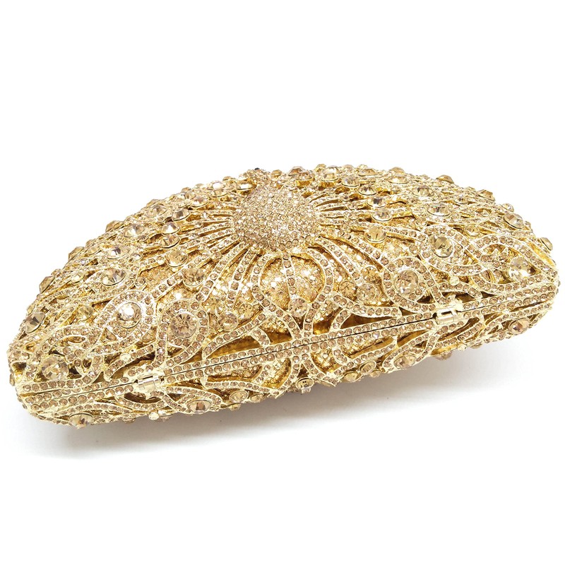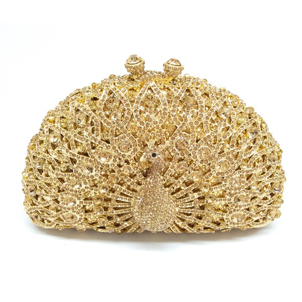 Bolso de mano para mujer, diseño de pavo real, con cristales, Dorado, Small