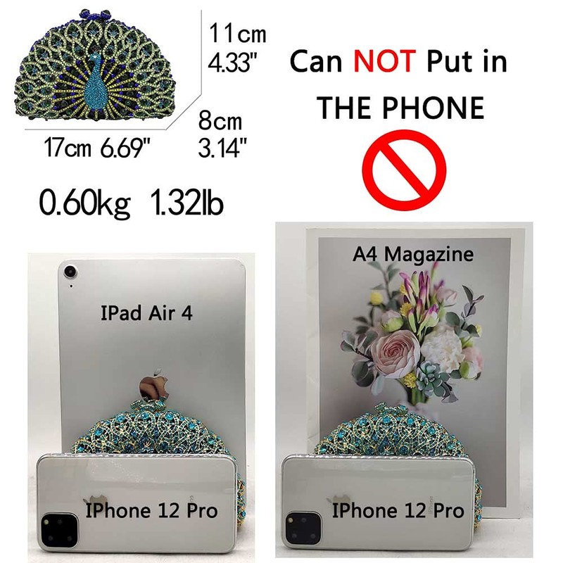 - Tamaño: 17 x 11 x 8 cm (largo x ancho x alto). Tamaño delicado puede adaptarse a mini espejo, dinero en efectivo, tarjeta, llave.
