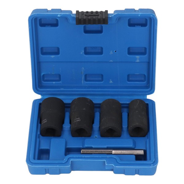 Bolt Extractor Kit, 5Pcs, 17mm, 19mm, 21mm, 22mm Sizes, Cr Mo Steel, Bolt Nut Extractor Set with Storage Box, 1/2in Drive Impact Lug Nut Remover Tool Metric