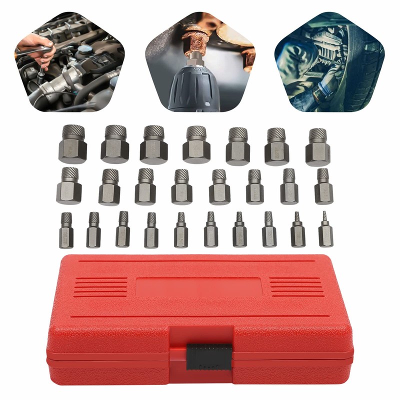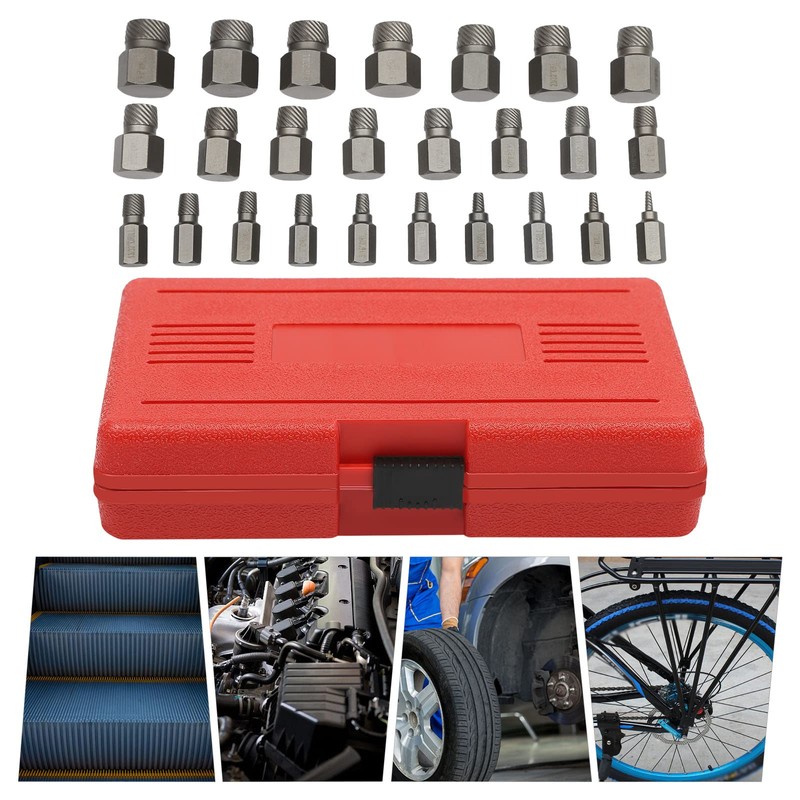 The 25-piece multi-spline screw extractor set can meet your multi-size needs. The carrying case included in the package can make your storage and on-the-go carrying easier. The high-hardness chrome molybdenum steel and the fine hardening and sandblasting process will provide excellent quality assurance for the product. It will be your powerful helper for removing bolts and other accessories!