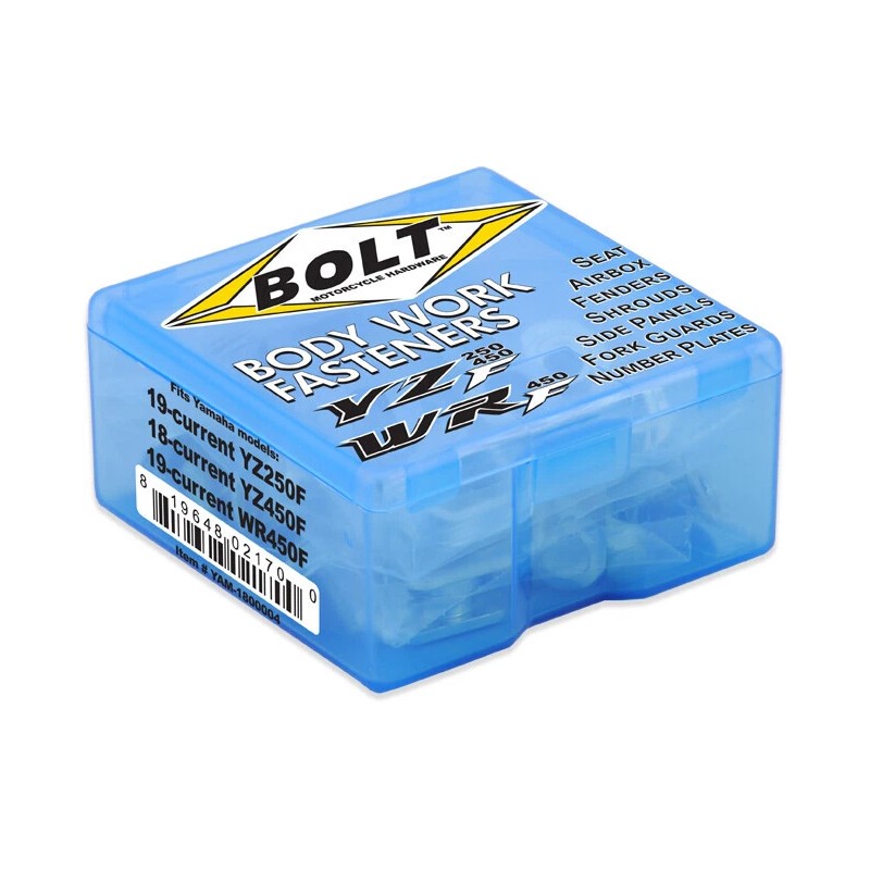 - Bolt Motorcycle Hardware Full Plastics Fastener Kits include all factory replica fasteners and aluminum bushings needed to fasten complete bodywork