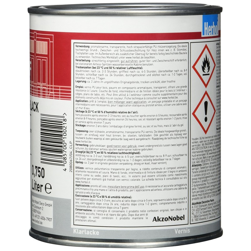 Transparent, highly durable, low-flavour PU wood seal. The ideal high-quality base, intermediate and final coating for wood inside such as Seating, table tops, etc. Can be used outdoors as an additional cover for already coloured coated components.