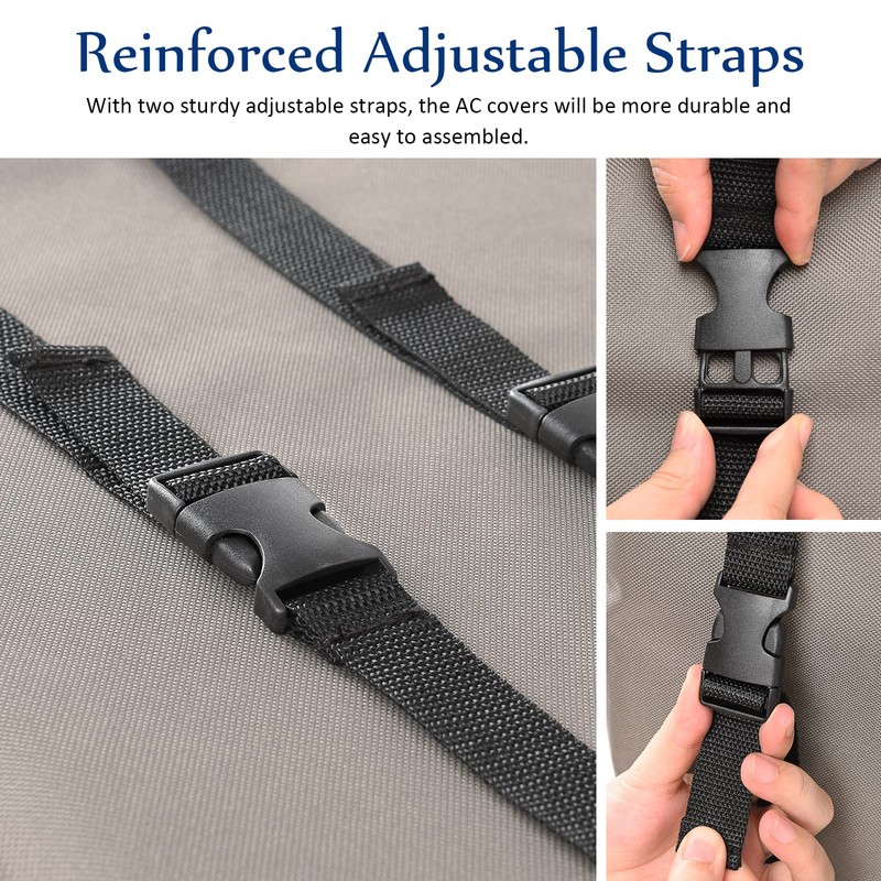- PREMIUM QUALITY -made of 600D heavy duty Waterproof oxford fabric, 2 adjustable Strap Included prevent the accumulation of rain and snow, protecting your AC window unit from rust and corrosion.