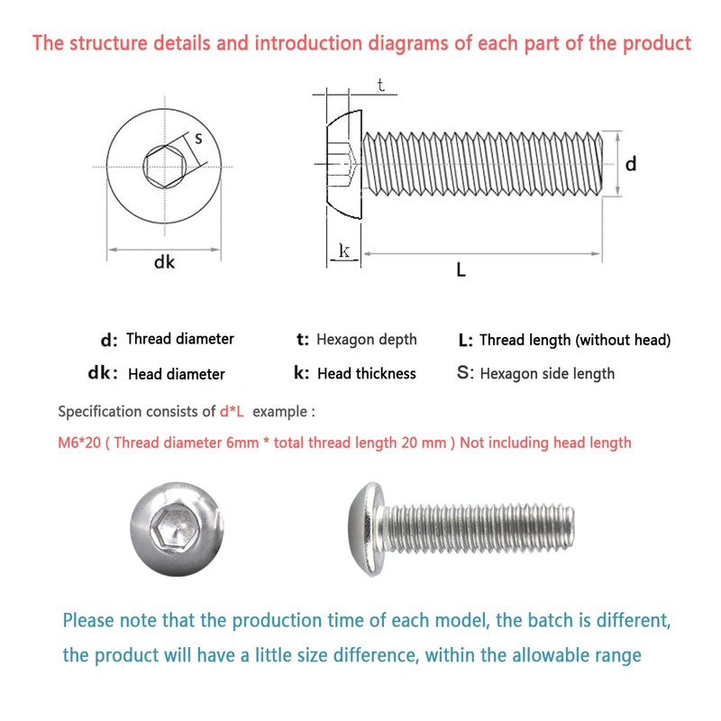 - 【Product features】: hexagon socket head bolts with large contact area on the head and more balanced force. When tightening the screw, the wrench is not easy to slip out, better tightening, the thread is tight and the force is uniform, and it is not easy to deform and slide during use, better Plays the role of fastening.