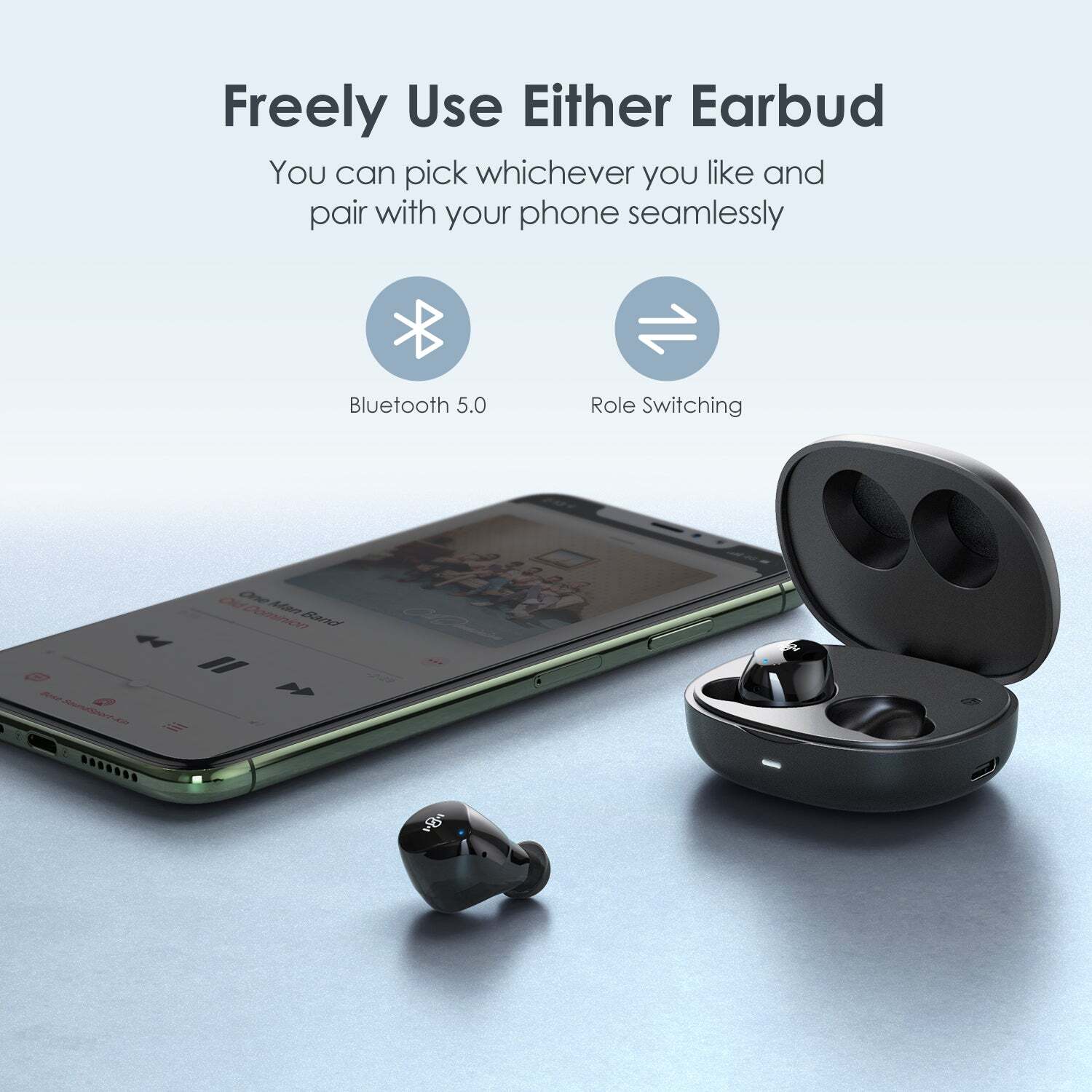 Two Colors to choose Why you choose from us? Adopted Bluetooth 5.0 technology, with SBC Bluetooth profiles to tune AAC, significant noise isolation and 10 mm dynamic drivers, HD Stereo No Delay in Playback, give you a realistic music experience. Eliminate Complicated Setups Utilizing industry-leading Bluetooth 5.0 technology for ultimate control of your listening. Pick up either of the earbuds to automatically pair a rock solid, quick, and hassle-free connection to your device.