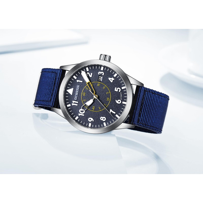 BOLYTE Men's Mechanical Military Watch Automatic Automatic Date Analog Display Premium Nylon Band Open Heart Design, N Blue, Military