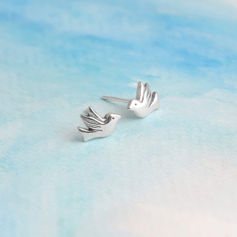 Boma Jewelry Sterling Silver Dove Bird Stud Earrings