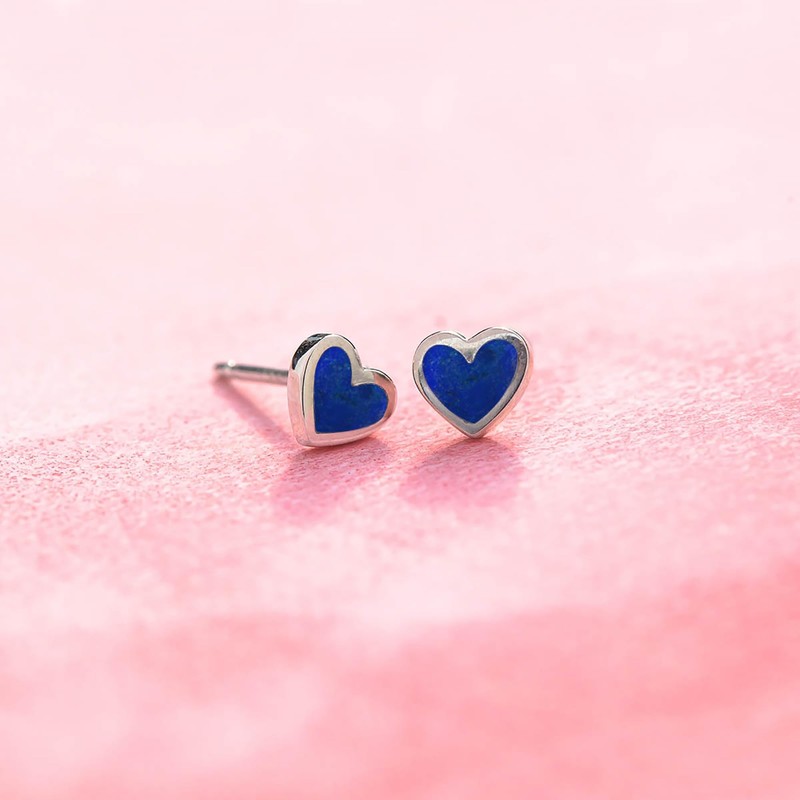 Boma Jewelry Sterling Silver Heart Stud Earrings (Synthetic Blue Lapis)
