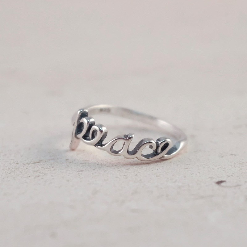 Boma Jewelry Sterling Silver Peace Script Ring, Size 7