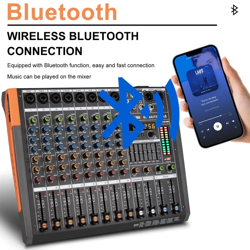 - Experience seamless Bluetooth wireless audio streaming: Effortlessly play your music without cables, directly to the console. Easily mix tracks from your smartphone with this audio mixer. Stream your favorite tunes from Spotify or Pandora straight to the mixing board, making your music experience truly hassle-free