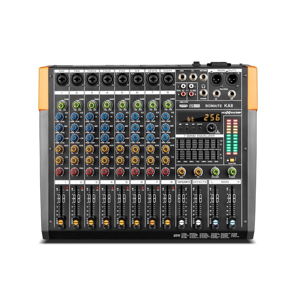 Bomaite KA8 Professional 8-Channel Mixer Audio Interface with Digital USB, MP3, Bluetooth Input, and 48V Phantom Power – Ideal for DJs, Churches, Schools, and Parties – Pro Level Performance