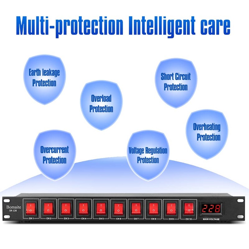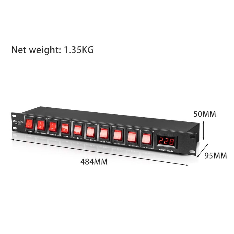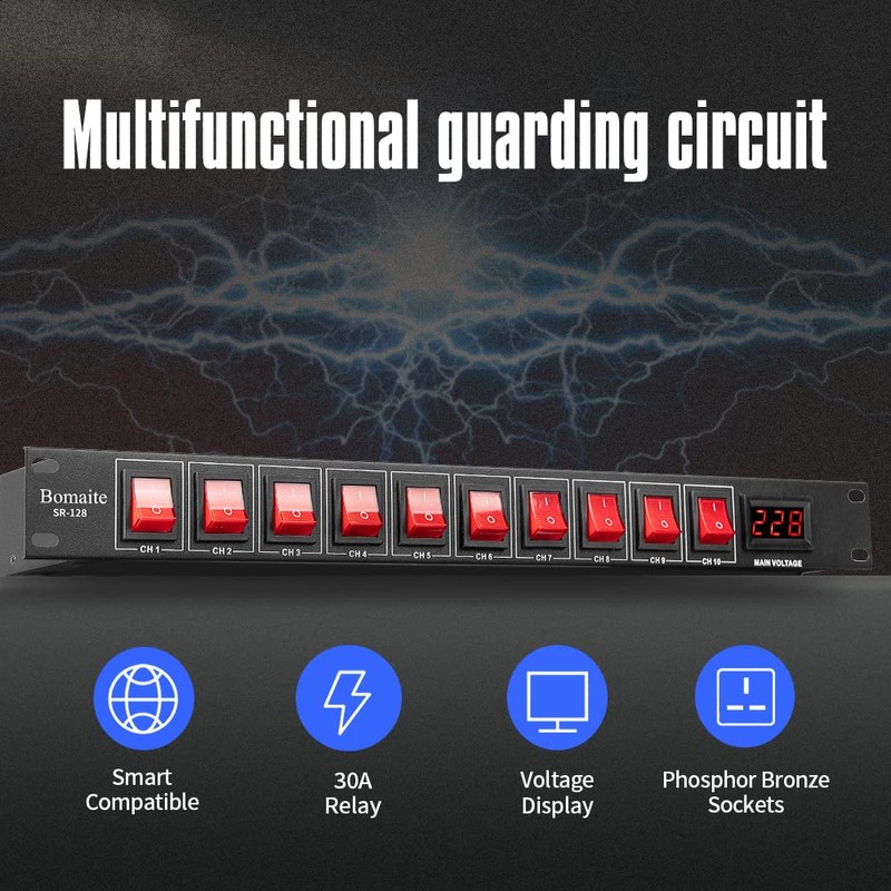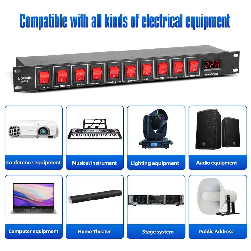 Bomaite SR-128 10 Outlet Power Sequencer Conditioner - 15A 1800W AC power Rack Mount Switch Conditioner, Pro Audio Digital Power Supply Surge Protector For Home Electrical Appliance,Computer Component