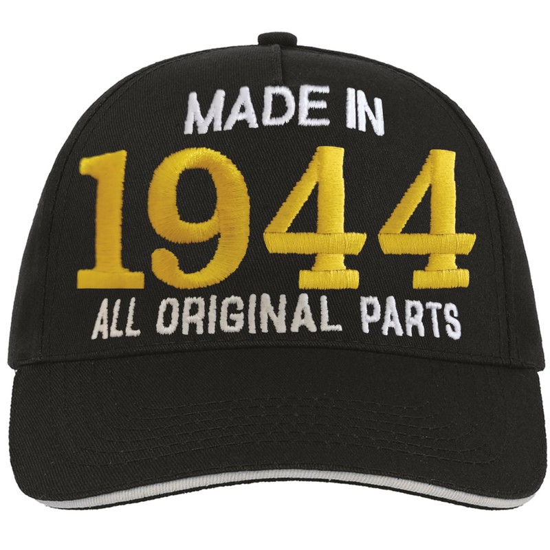 - It is not easy to find a whimsical, original, funny, ironic, useful, economic and personal gift that highlights this rare moment in life in a special way that must be thought of as it takes place every 10 years. For these events, our black cotton caps with white profile, embroidered with the birthday of the celebrant, have been inserted into the English script: "MADE IN ... ALL ORIGINAL PARTS".