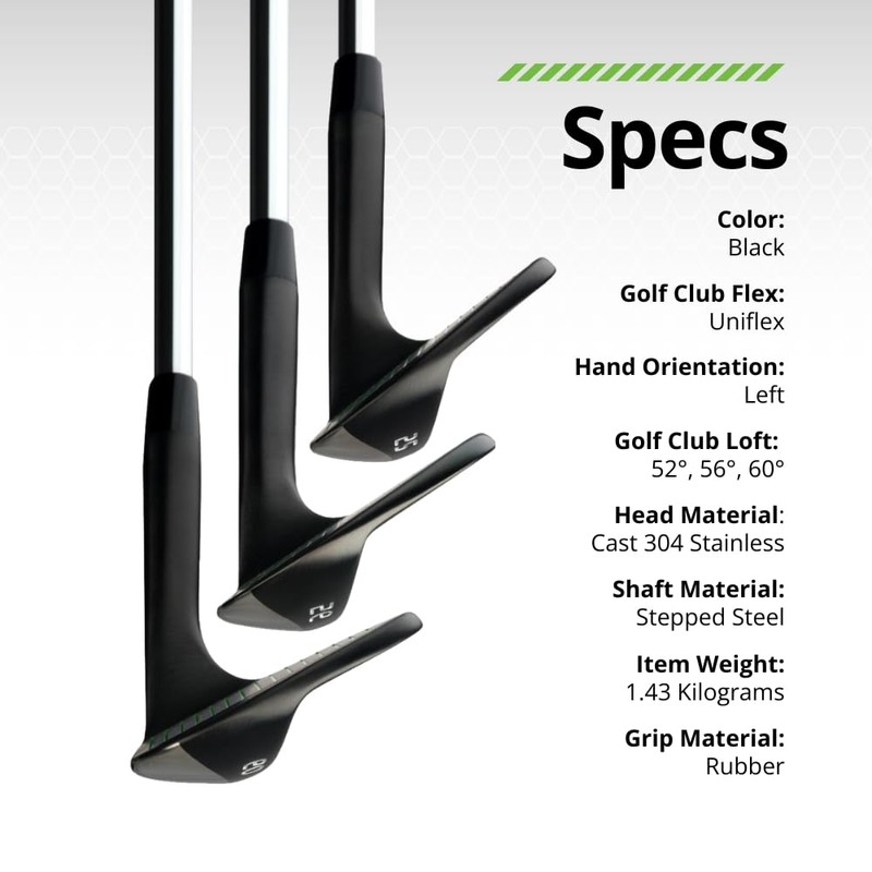 BombTech - Premium Golf Wedge Set - 52, 56, 60 Degrees Golf Wedges - Left Handed (Black)