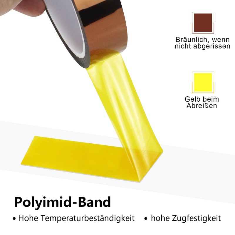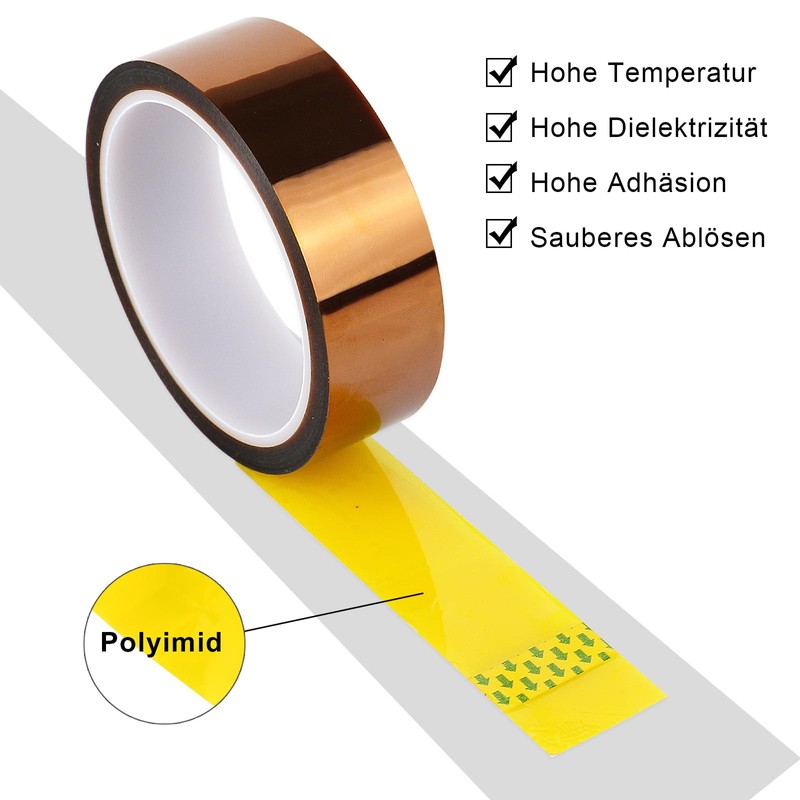 - Heat-resistant polyimide tape: self-adhesive high temperature adhesive tape, strong adhesive, 33 metres long, heat-resistant up to 260 °C