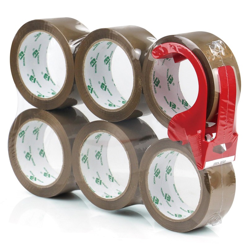 BOMEI PACK Cinta de Embalaje de Alta Resistencia Marrón con Dispensador, Ultra Fuerte, Cinta de Embalaje Industrial para Embalaje de Envíos 6 Rollos 1.8Mil, 1.88 pulgadas x 54.6 yardas por rollo