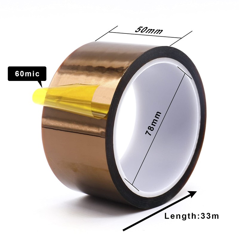 BOMEI PACK High Temp Tape, High Temperature, Heat Resistant Polyimide Film Tape for Sublimation Printing, Pack of 2, 50 mm x 33 m