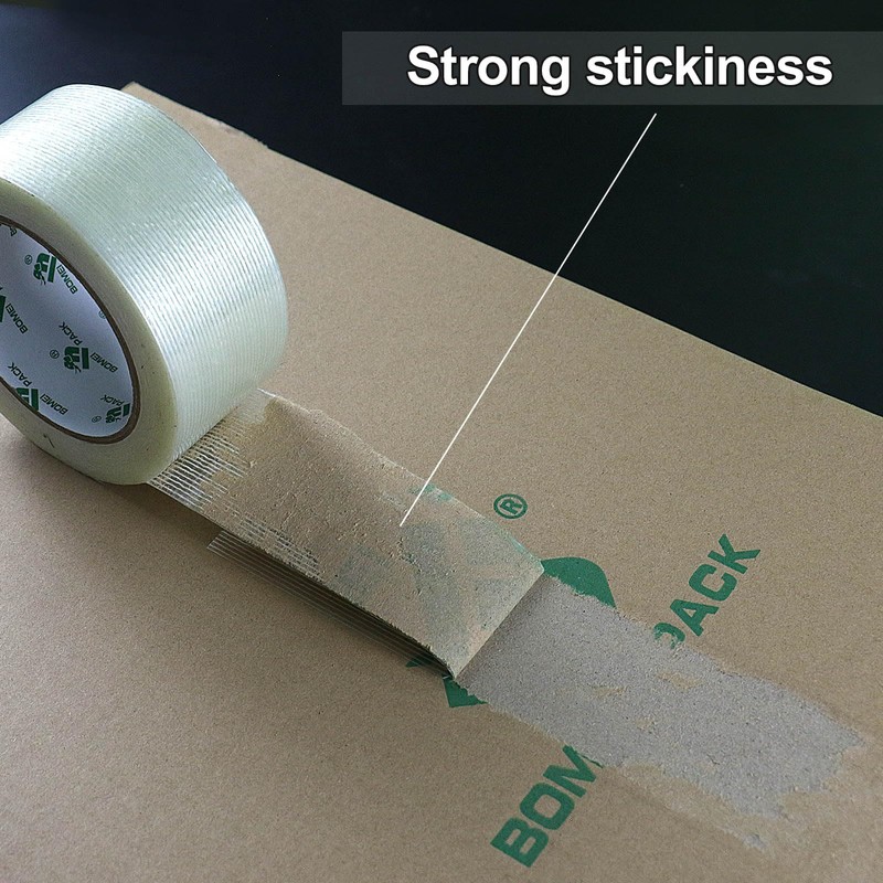 - Glasfaserverstärkt: - Das verstärkte Glasfaserband besteht aus verstärkter PET-Folie, ist ideal zum Halten, Umwickeln schwerer Pakete