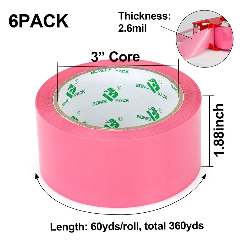 - ✔HIGH PERORMANCE: BOMEI PACK 2.6mil pink packing tape for shipping with strong adhesive, will not tear or split easily. 1.88in standard size, will fits well to all standard tape dispensers and tape guns.