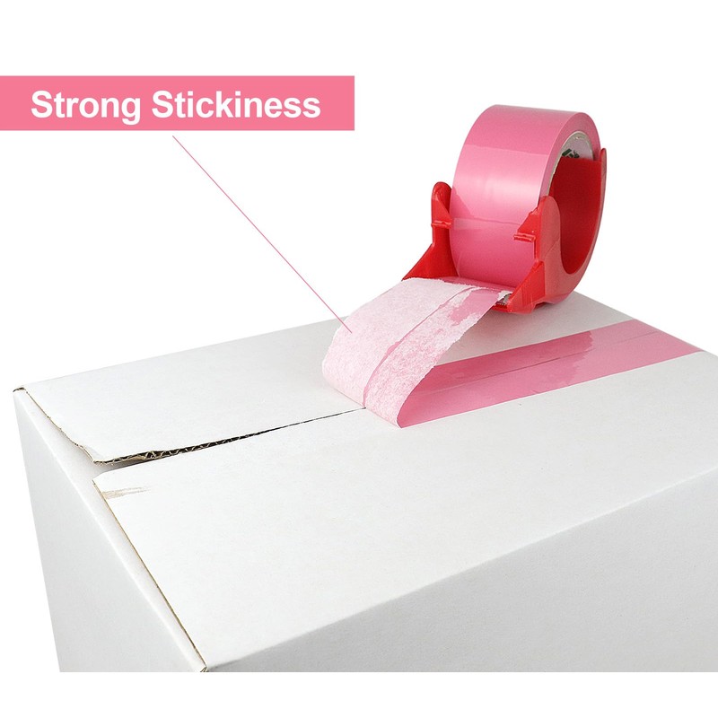 Pink packing tape with dispenser offers excellent holding power, it is perfect for home, office, depot use. Like shipping, packaging, mailing, moving, storage, box and carton sealing, also for removing dust and hair.