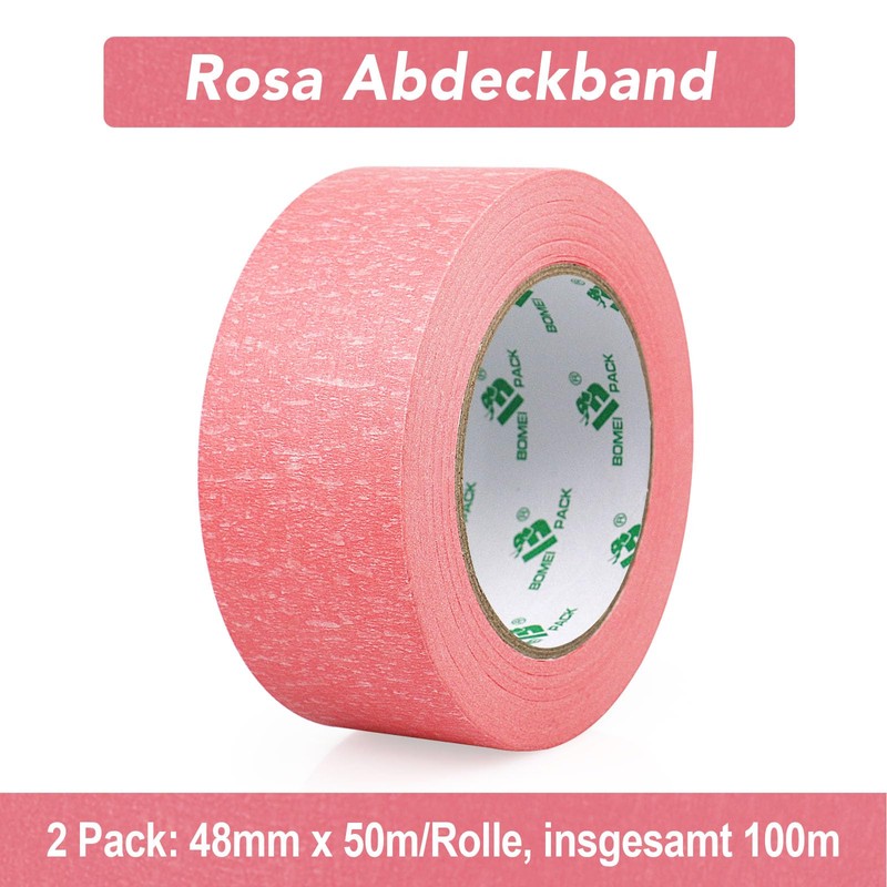 BOMEI PACK Pink Painter's Tape 50 m Premium Crepe Paper Masking Tape for Painting, Crafts and DIY - Professional Painter's Tape (48 mm x 50 m)