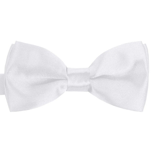 BomGuard Children's Boy's Bow Tie - Baby Child Bow Adjustable Length Shiny Silk Effect, White