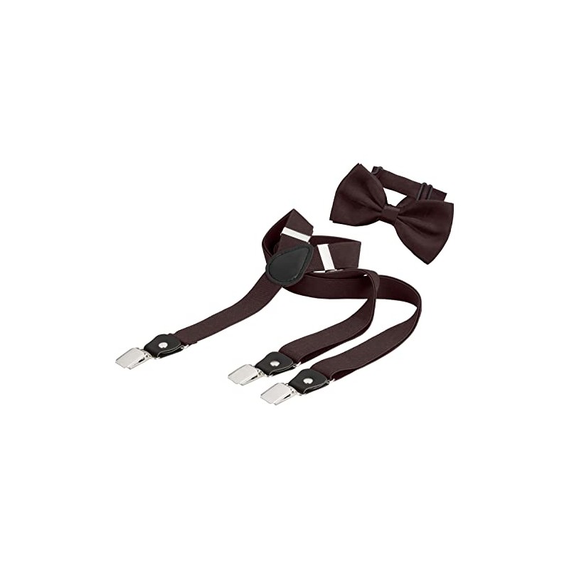 BomGuard Men's Braces 2.5 cm Riveted + Bow Tie, Coffee/Brown, coffee