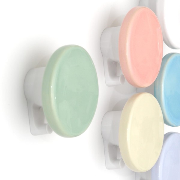 Our round ceramic wall hooks are not only practical, but also a stylish decorative element for hallway, kitchen, bathroom or children's room. Choose your favourite combination from different colours - whether colourful mixed or in a harmonious colour. The ceramic elements are traditionally handmade and bring Mediterranean flair to your wall with their charming vintage design.
