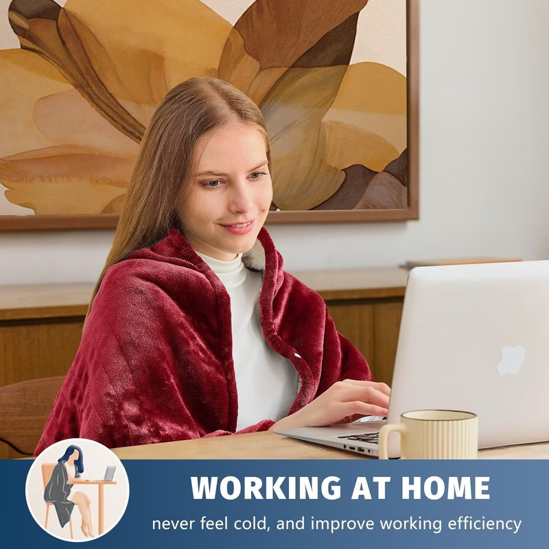 heated lap blankets for adults with buttons are suitable for single use, reading, lying on a couch, sofa, college dorm, or just an office chair blanket, or electric lap blankets for adults. drape an electric cape over your shoulders, button it up and you can even create a heated blanket shawl when working at a desk. you can also use it as a hot water bottle when you need heat for your stomach, shoulder, or back. 50X60-inch faux fur heated blanket is portable and easy to store, making it an excellent outdoor heated blanket companion, as a car heated blanket, or to keep warm in the home car when camping or traveling.