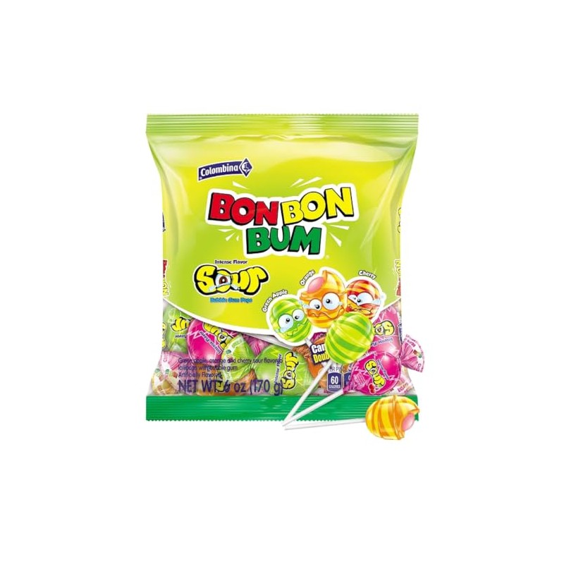 Bon Bon Bum – Fruity Lollipop with Bubble Gum center – Perfect for Parties and Sharing (10 Pieces, Sour)