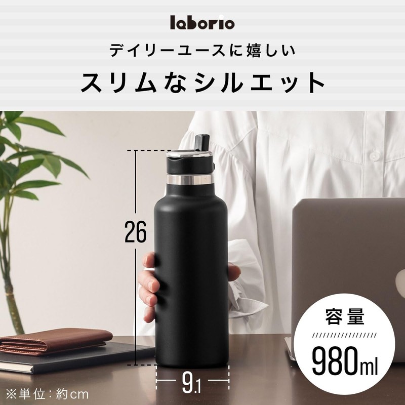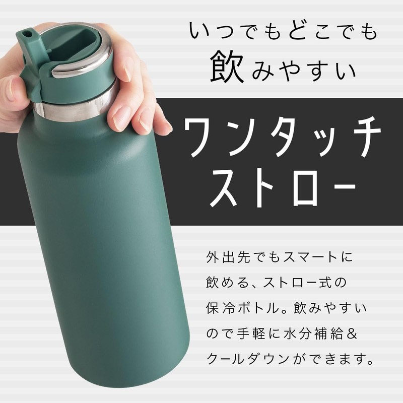 Bon Furniture Water Bottle, 36.8 fl oz (980 ml), Vacuum Insulated, Large Capacity, Drinking Water Bottle, Direct Drinking, Stainless Steel, Straw Bottle, For Adults, Cold Retention, Carry Loop,