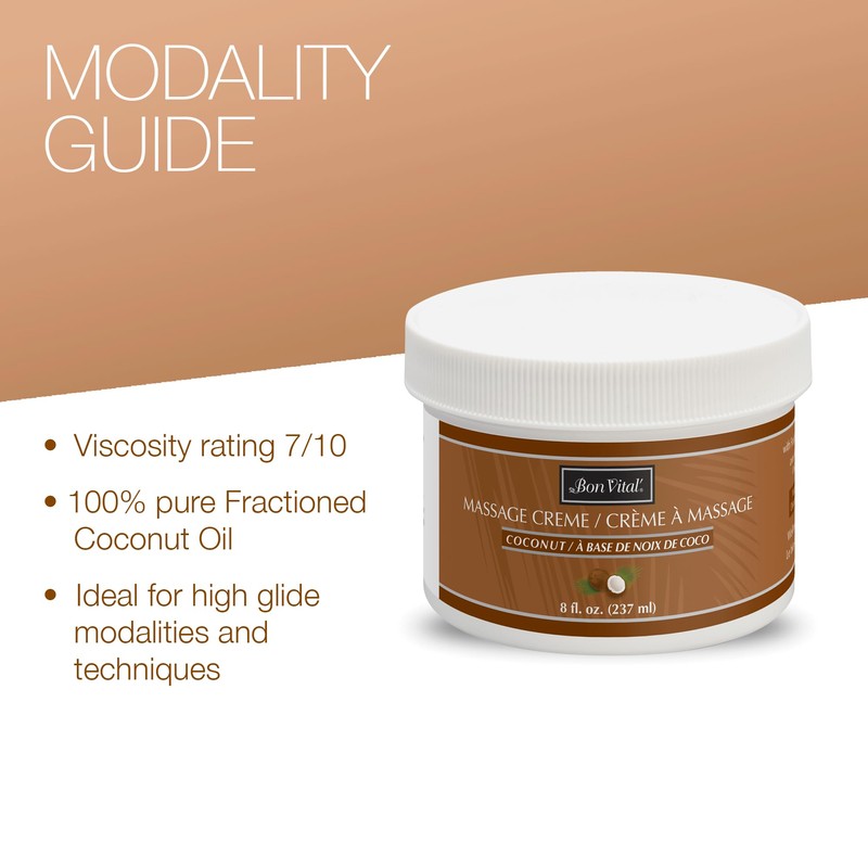 - Smooth and luxurious creme made with 100% pure Fractionated Coconut Oil helps you achieve a more enhanced, relaxing massage and provides countless skin nutrient benefits and intensive hydration for dry skin