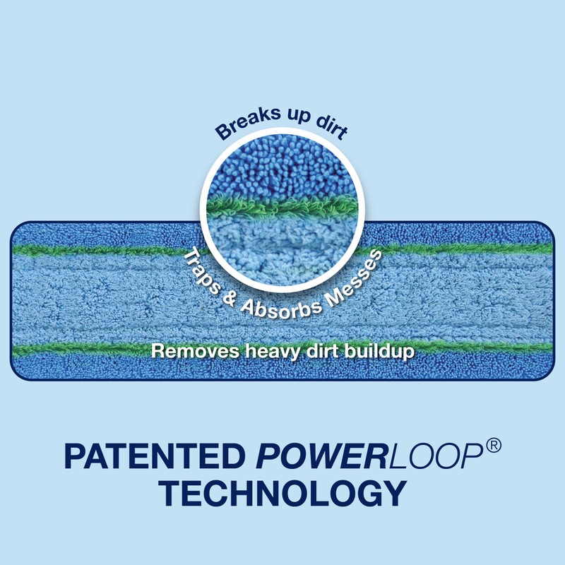 Microfiber deep clean pad, power loop technology that lifts & removes heavy dirt build-up, nylon scrubbers remove dirt from bevels & provide extra scrubbing power.