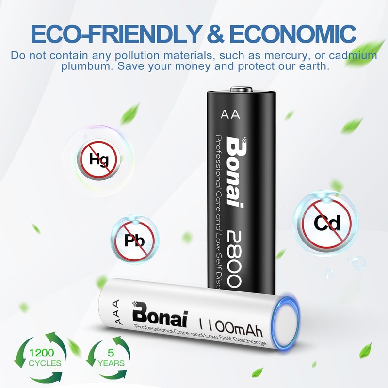 - Low Self-Discharge: BONAI AA AAA batteries have low self-discharge. The batteries can retain their charge for an extended period when not in use. We recommend fully charging them every 3 months for best results.