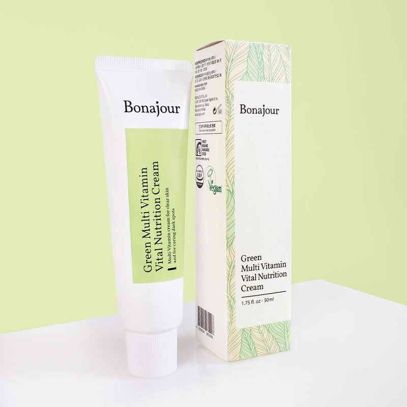 BONAJOUR] Vegan Natural Green Multi Vitamin Moisturizing Cream for Face - 70% Vitamin, Anti Aging & Brightening, Remove Dark Spot 1.7 fl. oz