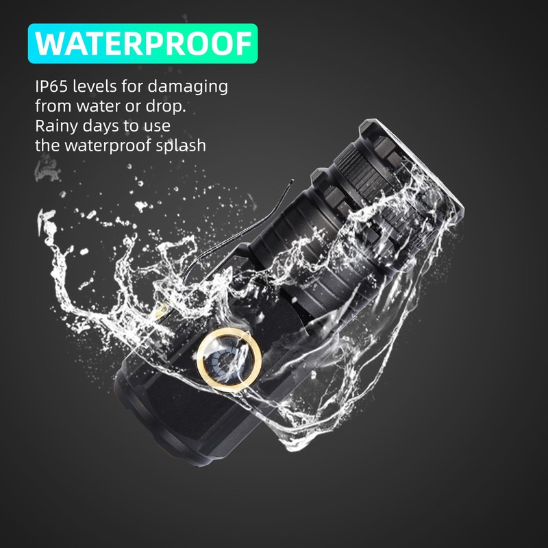 - 【Weather Proof】Constructed from aerospace grade aluminum, this mini flashlight is both sturdy and designed for long-term use. It has a waterproof rating of IP65, which can be used in rainy weather, but cannot be immersed in water
