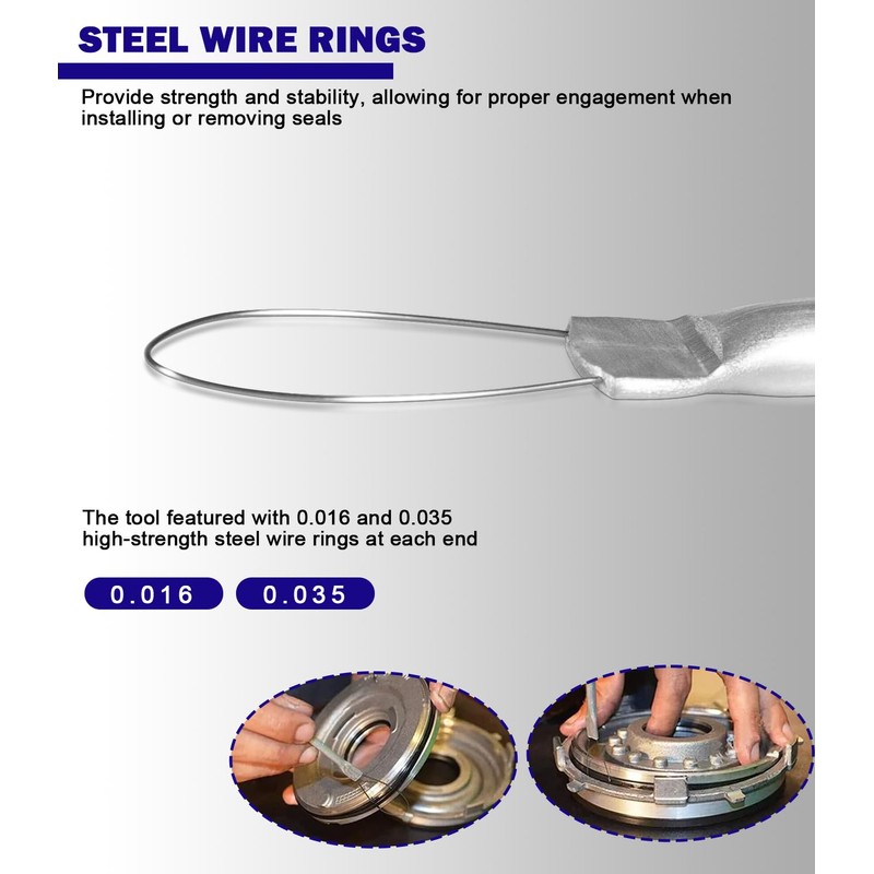 • Steel Wire Rings- Featured with 0.016 and 0.035 high-strength steel wire rings at each end. The ring provides strength and stability, allowing for proper engagement when installing or removing seals