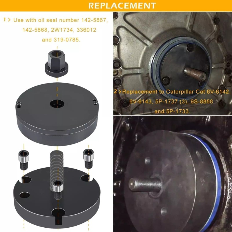 APPLICATION – This tool set used on Oil seal numbers 142-5867, 142-5868, 2W1734, 336012 and 319-0785. Suitable for Caterpillar CAT 3406 3408 C15.