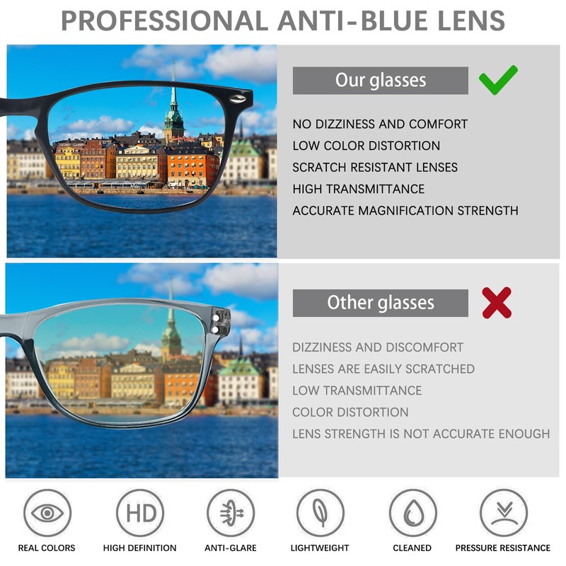 - 【Protect Your Vision and Health】: Multifocal Blue Light Blocking Glasses can Reduce Digital Eye Strain, Block Blue Light while gaming or working under fluorescent lights, protecting your vision and reducing glare. Say goodbye to eye fatigue and blurred vision.