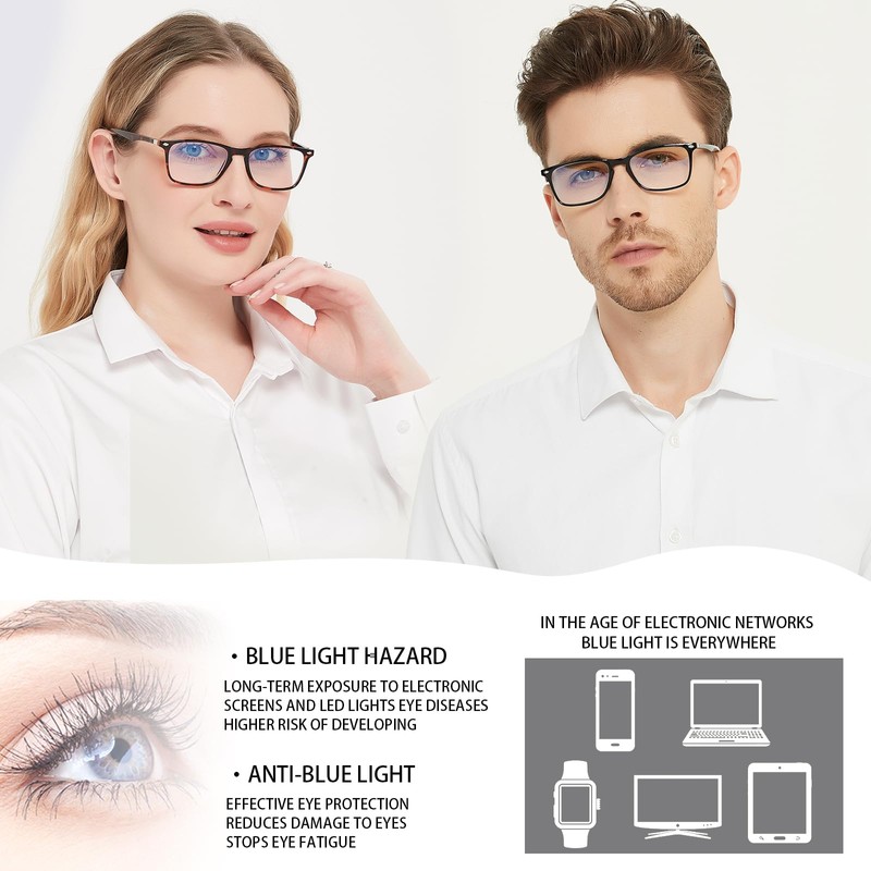 The more time you staying with electronic devices, more blue light you would be exposed to. Our blue light blocker glasses help to protect eyes from over exposure of harmful blue light.