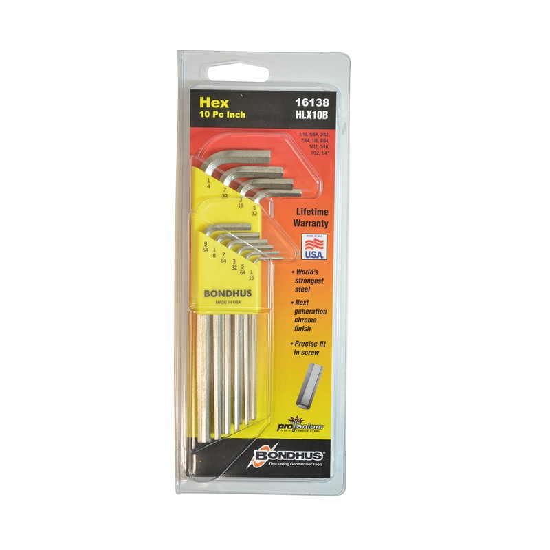 Bondhus (bondasu) Hex Wrench Set 10 Piece Inch Type hlx10b