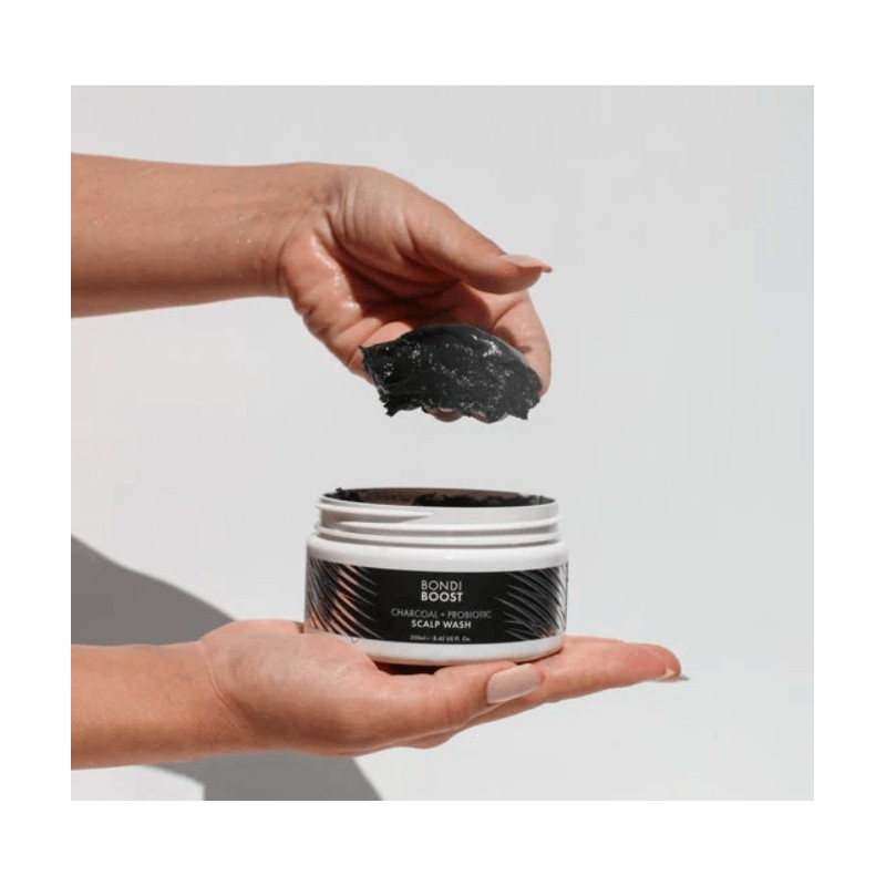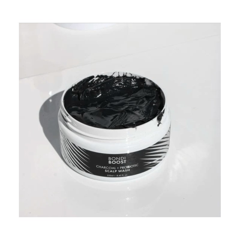 Bondi Boost Charcoal Probiotic Mask 250ml is a deep cleansing and re-balancing wash that draws out impurities, dead skin cells, and excess sebum oils that clog the scalp and hair follicle, leaving the scalp feeling hydrated, cleansed, and re-balanced.