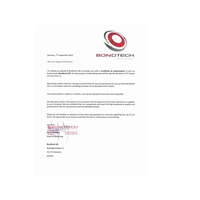 Bondtech CHT® Coated Brass Nozzle MK 6 .6mm (1pack) - MOS Bondtech CHT Nozzle...