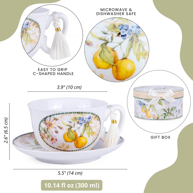Bone China Tea/Coffee Cup and Saucer in Gift Box Fine Bone China Coffee Cup with Saucer Tea Cup Set of One (Lemon)