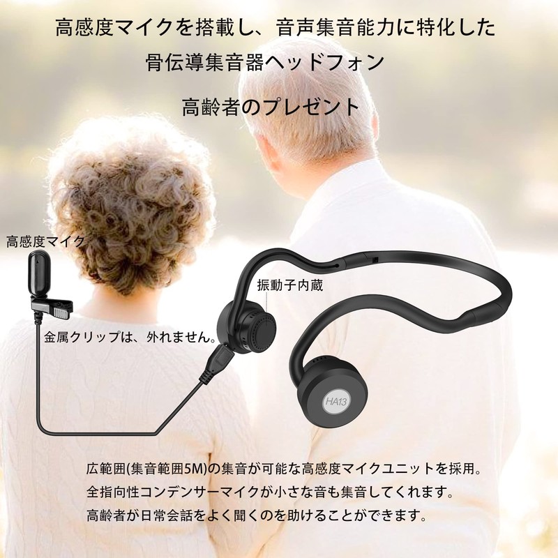 This back-hook senior hearing bone conduction headphone comes with an external plug-in microphone that is suitable for people with hearing impaired (non-generic) and can achieve wireless hearing disorder assistance. You can use these headphones for a long time without damaging your hearing. The headphones have a built-in lithium battery and can be used repeatedly when charged with a USB cable.