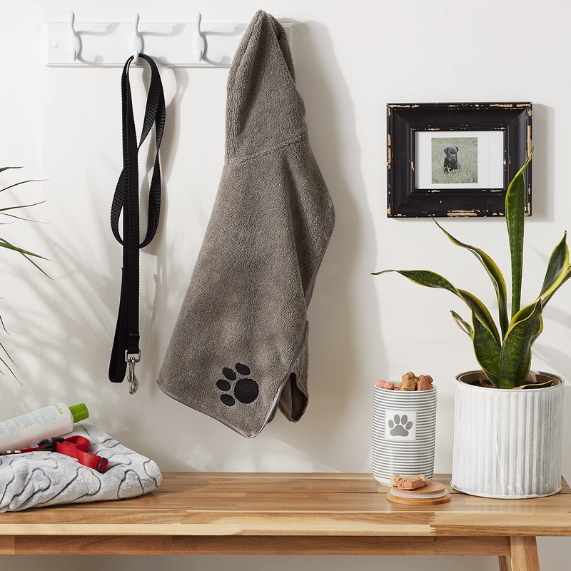 Bone Dry Pet Robe Collection, Embroidered Absorbent Microfiber Bath Robe with Adjustable Closure, for Dogs & Cats, Medium, Gray