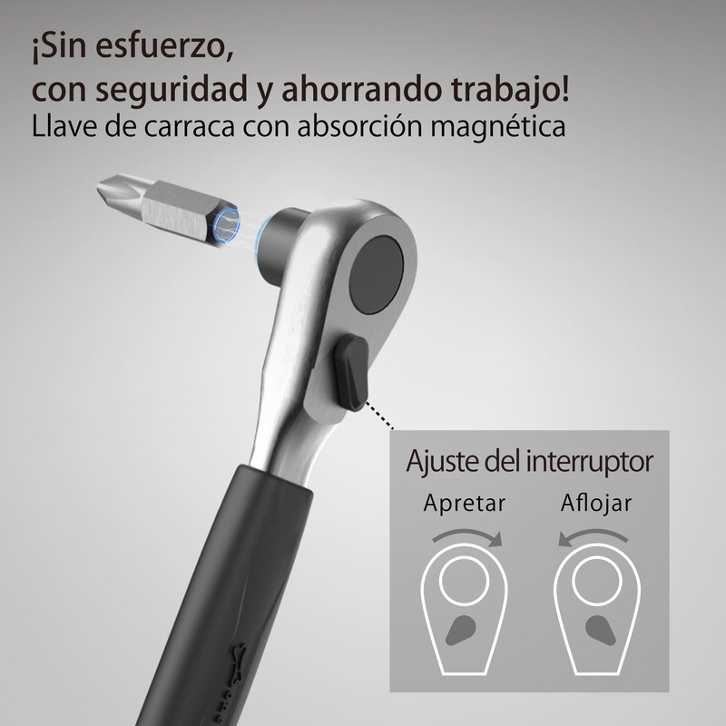 - Diseño duradero y resistente: Hecho a mano con materiales de primera calidad y con una llave de carraca magnética para una operación segura y sin esfuerzo, asegurando una larga durabilidad.