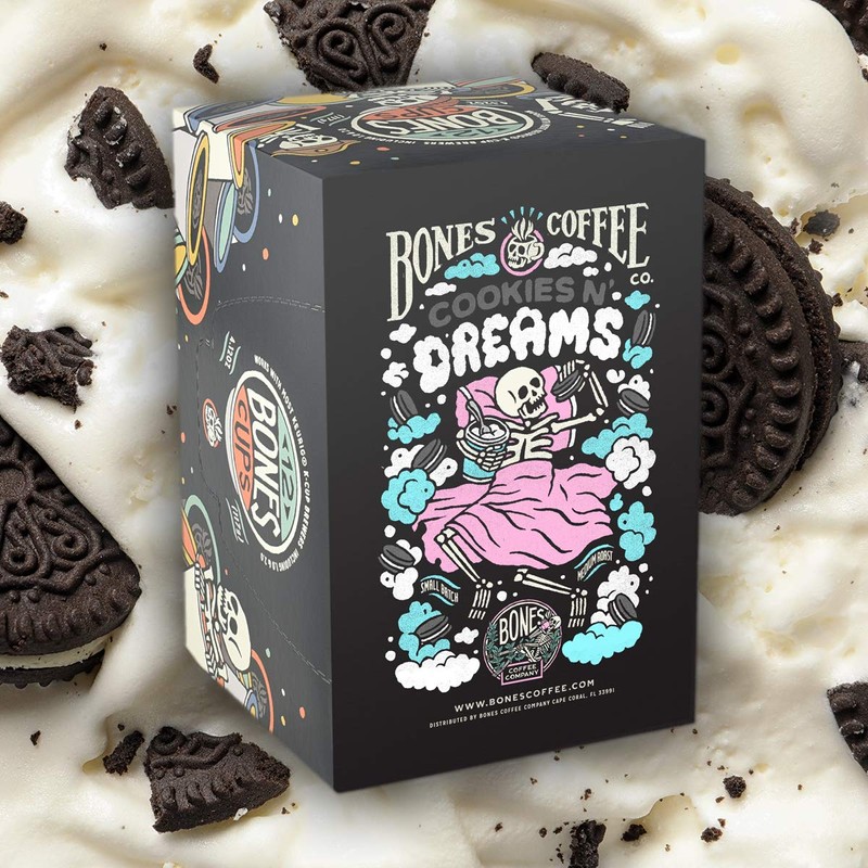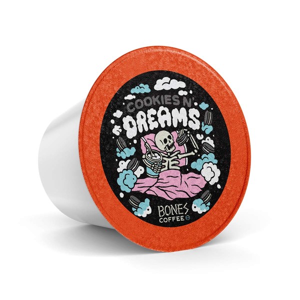 Bones Coffee Company Flavored Coffee K Cups, Cookies 'N Dreams - 12ct Single-Serve Coffee Pods for Keurig Coffee Maker