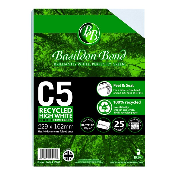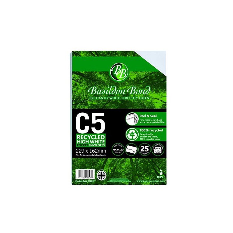 Bong Basildon Bond C5 Recycled White 120gsm Peel & Seal Pocket, Pack 25 Envelopes R10047