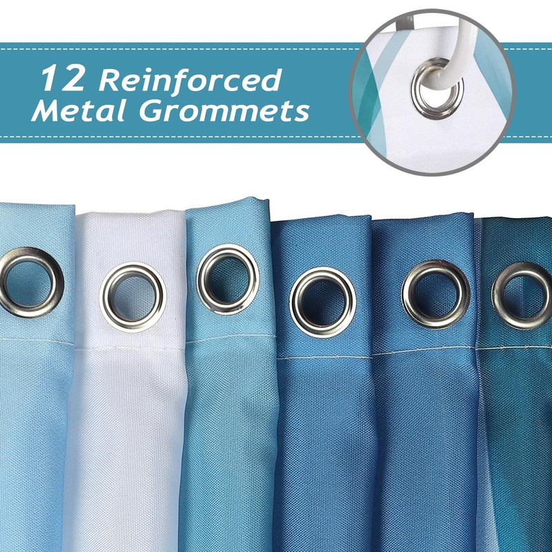 - Easy to Install: The shower curtain includes 12 plastic curtain hooks and 12 reinforced metal grommets, easy to install and and slide.